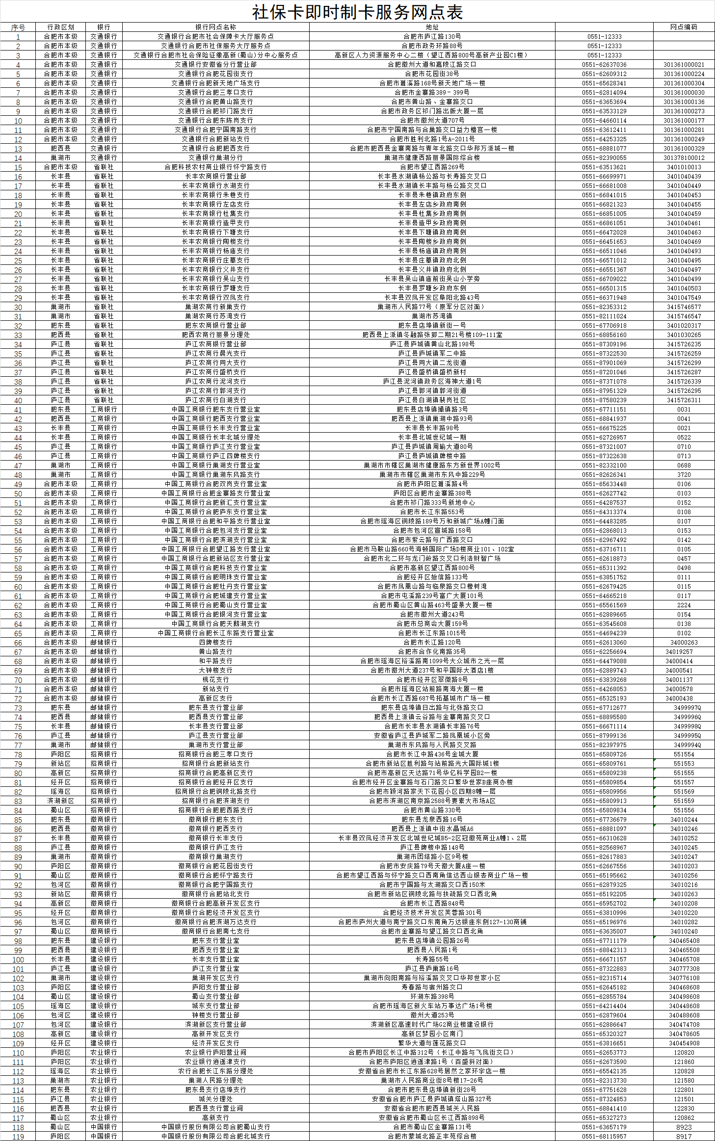 社保卡即時制卡服務網(wǎng)點表